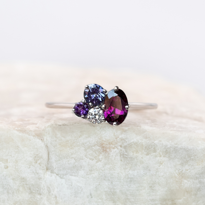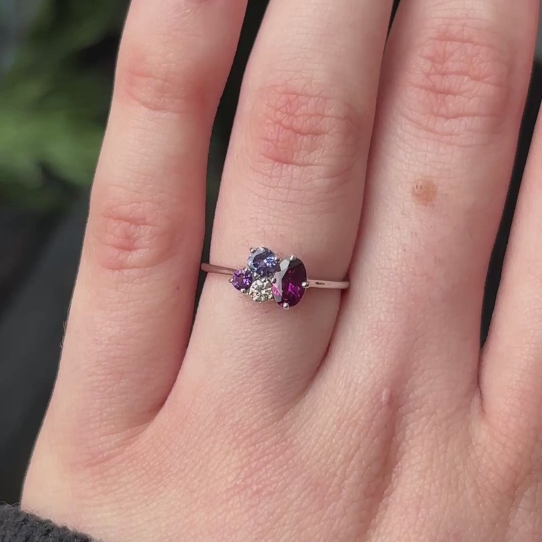 Natural Grape Garnet, Natural Tanzanite Natural Amethyst, Lab Grown Diamond
