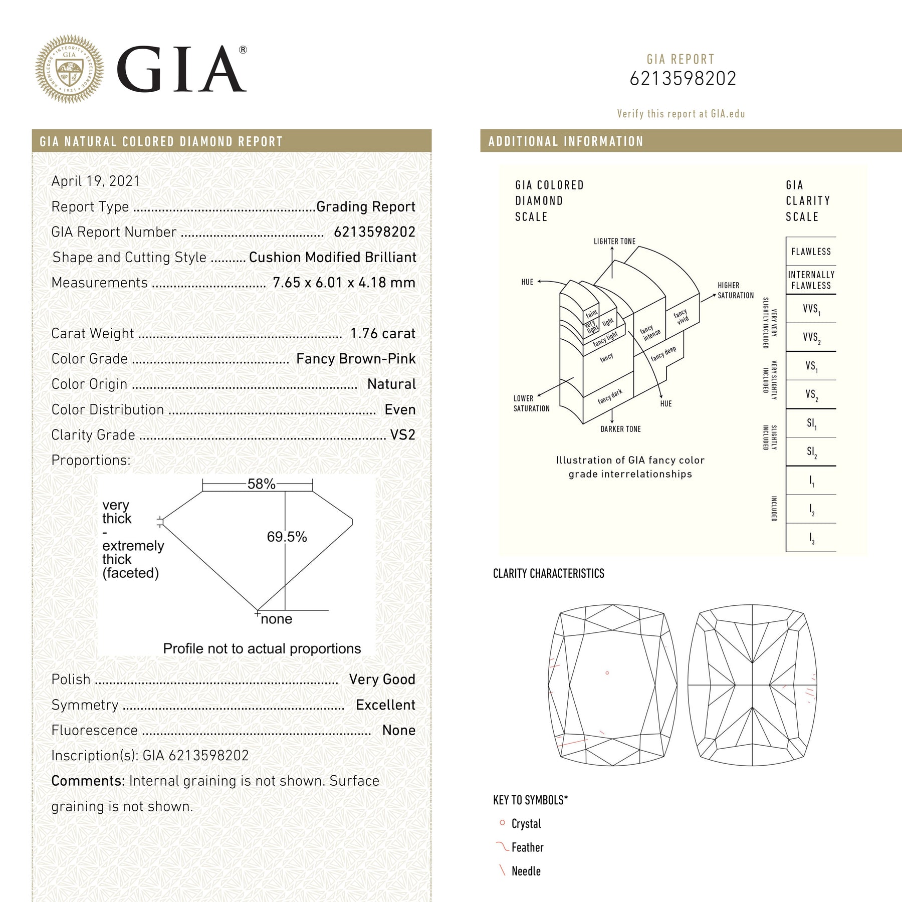 1.76ct 7.65x6.01x4.18mm GIA VS2 Fancy Brown-Pink Cushion Brilliant 🇨🇦 24111-01