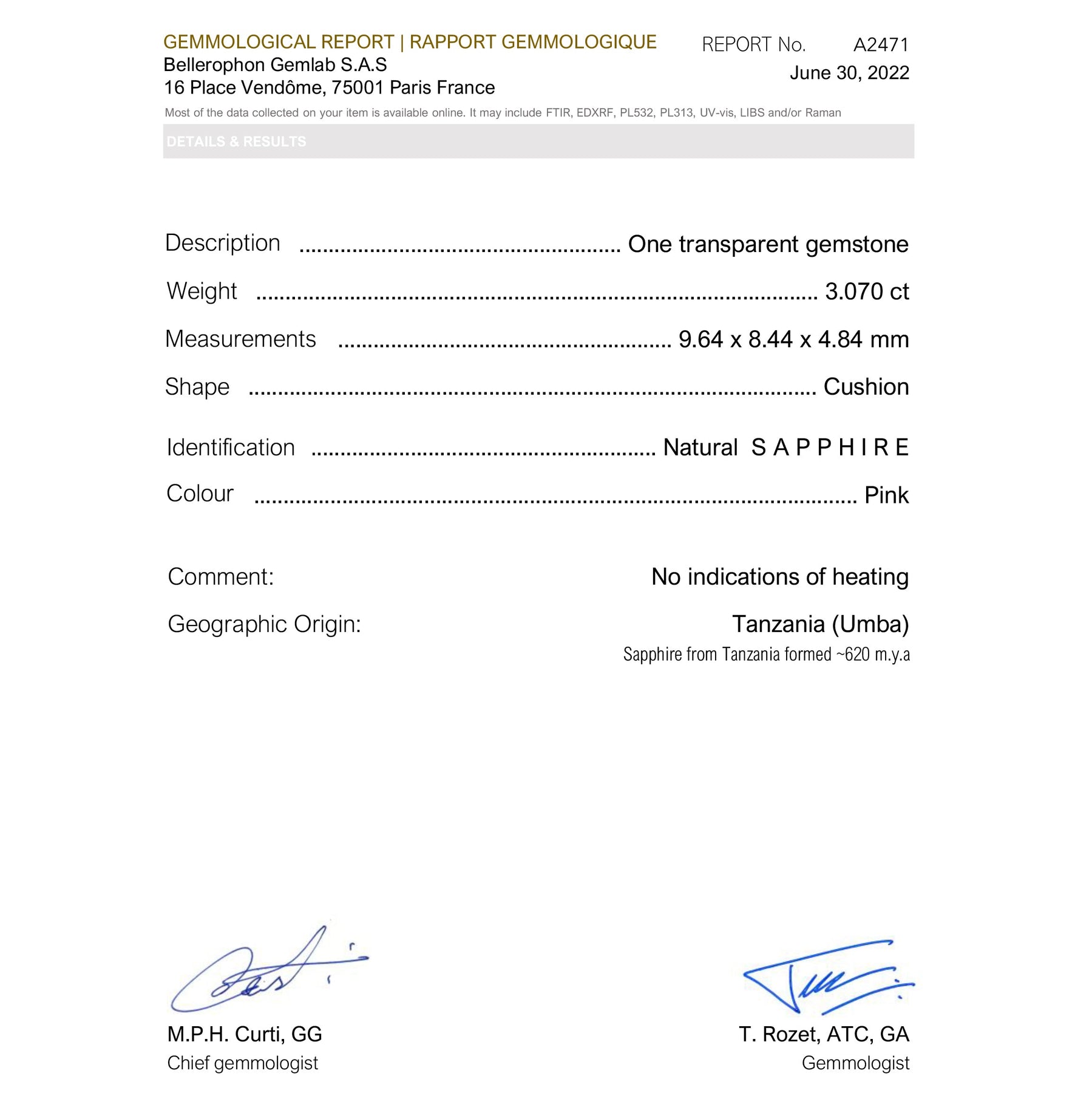 3.07ct 9.65x8.46x4.86mm Oval Brilliant Sapphire 22750-01