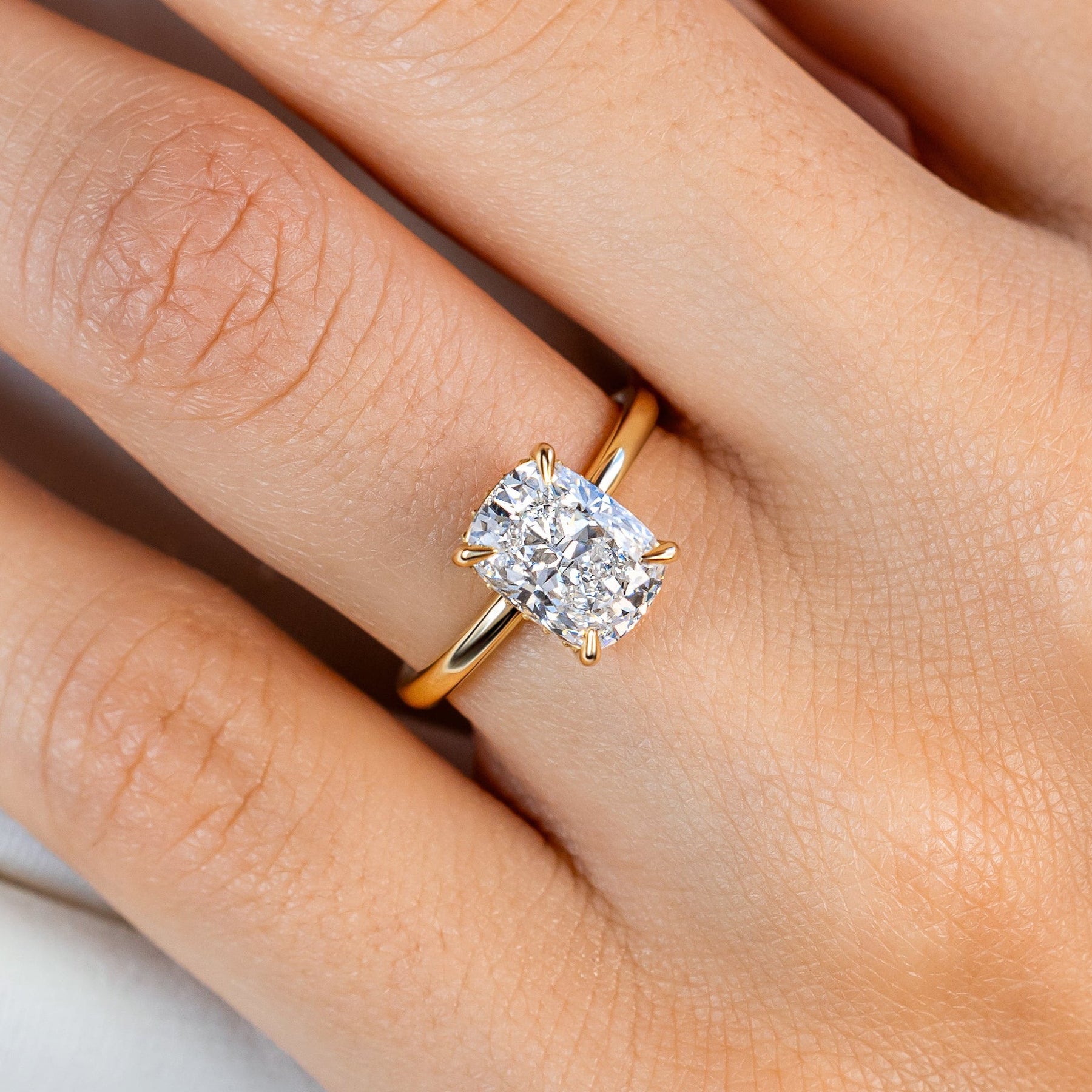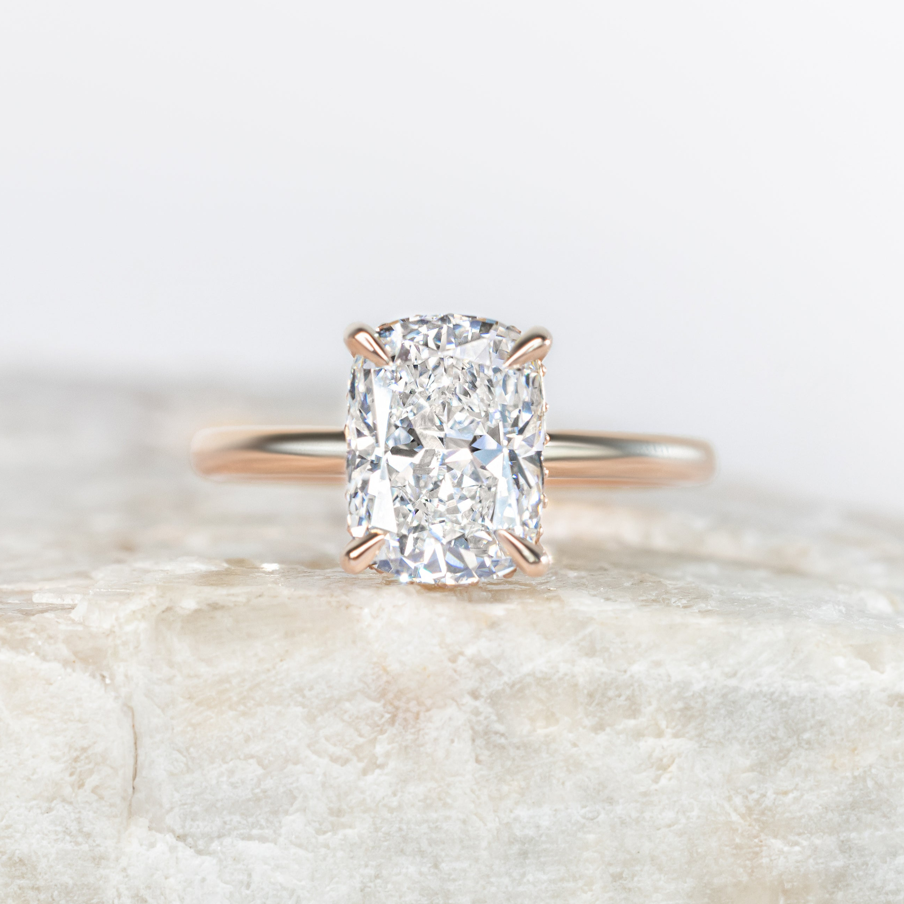 Shown with a 9.5x7mm, 2.50 carat elongated cushion-cut center stone, Skylar can be set with any shape and size center stone.