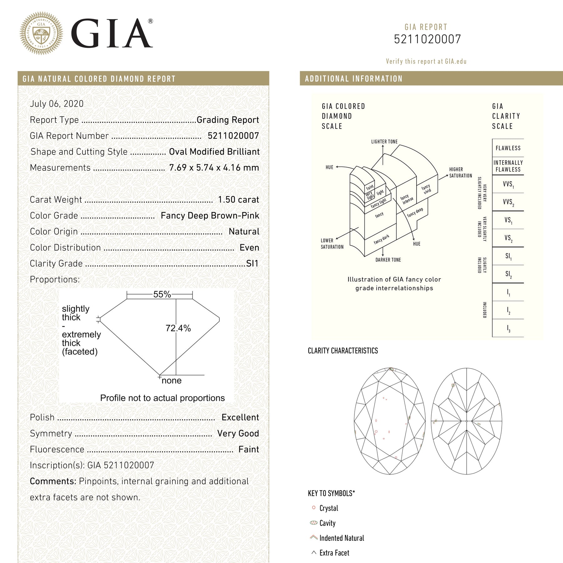 1.50ct 7.69x5.74x4.16mm GIA SI1 Fancy Deep Brown-Pink Oval Brilliant ๐ฆ๐บ 24161-01