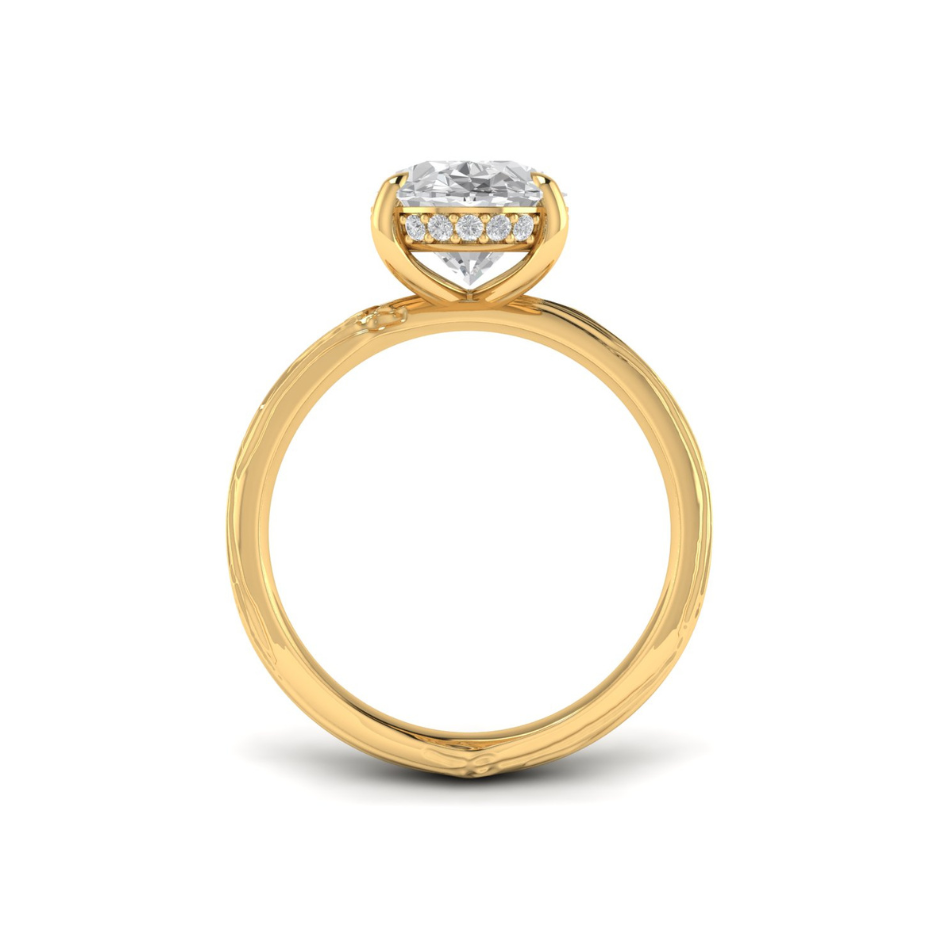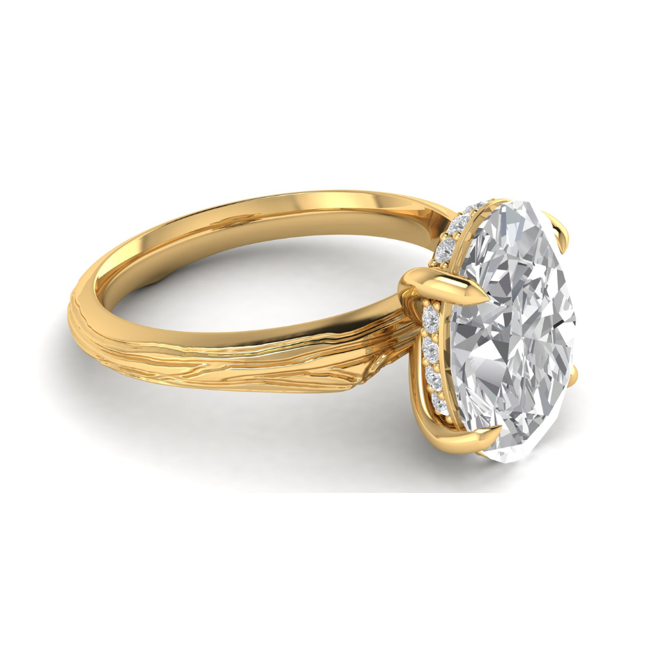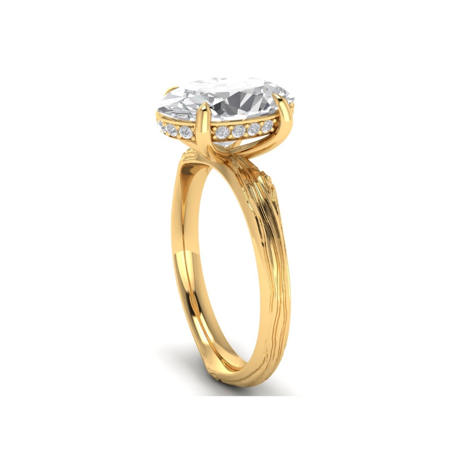 A custom engagement ring combining the motif of a tree branch and hidden halo. Inspired by our Adam Branch band.