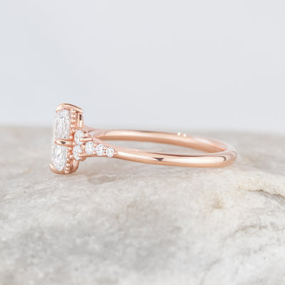 Phillipa is a vintage-inspired engagement ring defined by its timeless elegance and refined detail. Tapered ethically sourced diamond side stones frame the center stone, which is accented by delicate beading and compass-set claw prongs. With its low-profile setting and graceful silhouette, Phillipa is a sophisticated design that stacks seamlessly with a wedding band.